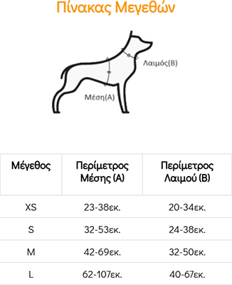 - Μετρήστε την Περίμετρο της Μέσης (Α) του σκύλου σας όπως φαίνεται στη φωτογραφία