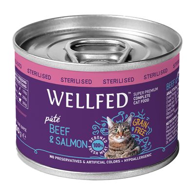 Wellfed Sterilised Βοδινό & Σολομός σε Πατέ 200gr