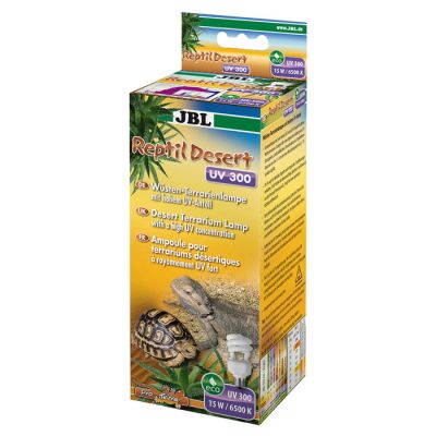 Λάμπα υπεριώδους ακτινοβολίας UVB 15W, για terrarium ερπετών ερήμου. Προσφέρει την απαραίτητη UVB ακτινοβολία που βοηθά στην παραγωγή βιταμίνης D3, η οποία είναι σημαντική για την υγεία των οστών και το μεταβολισμό των ερπετών. Ιδανική για ερπετά που ζουν σε ξηρές και ηλιόλουστες περιοχές.