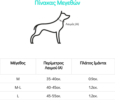 Για να επιλέξετε το σωστό μέγεθος, μετρήστε την Περίμετρο Λαιμού του σκύλου σας, όπως φαίνεται στη φωτογραφία (Α)