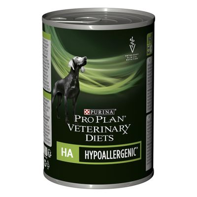 Πλήρης υγρή κλινική τροφή υδρολυμένη πρωτεΐνη σόγιας για το ανήλικο ή ενήλικο σκυλάκι σας, ανεξαρτήτως φυλής, με τροφικές αλλεργίες. Η τροφή αυτή είναι σχεδιασμένη από μία πρωτεϊνική πηγή η οποία έχει διασπαστεί (υδρολυμένη) σε πολύ μικρά τμήματα που είναι απίθανο να προκαλέσουν αλλεργική αντίδραση. Αυτές οι υδρολυμένες δίαιτες προσαρμόζονται καλά κατά τη διάρκεια της "δίαιτας αποκλεισμού" για διάγνωση (ή αποκλεισμό) της τροφικής αλλεργίας. Κατά τη διάρκεια αυτής της δοκιμής είναι πολύ σημαντικό ο σκύλος σας να διατρέφεται αποκλειστικά με την HA για σκύλους και να μη λαμβάνει κανένα άλλο φαγητό ή λιχουδιές για 8-10 εβδομάδες, εκτός βέβαια από νερό. Η τροφή είναι επίσης ωφέλιμη για σκύλους με σοβαρές νόσους του εντέρου όπως Φλεγμονώδη Νόσο του Εντέρου (ΦΝΕ) αφού είναι σχεδιασμένη από επιλεγμένες πηγές πρωτεϊνών και είναι ιδιαίτερα εύπεπτη.