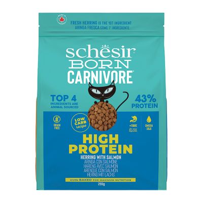 Πλήρης τροφή με ρέγγα και σολομό, χωρίς σιτηρά, για ενήλικες γάτες. Η τροφή αυτή αποτελείται από τραγανές κροκέτες που ψήνονται στο φούρνο, διατηρώντας την πλούσια περιεκτικότητα σε βιταμίνες και μέταλλα. Επιπλέον, παρασκευάζεται με φρέσκο ψάρι και έχει χαμηλή περιεκτικότητα σε υδατάνθρακες, ενώ είναι πλούσια σε φυτικές ίνες για τη διευκόλυνση της πέψης. Περιέχει ακόμη έλαιο σολομού, πλούσιο σε Ωμέγα λιπαρά οξέα, για την υγεία του δέρματος και του τριχώματος.