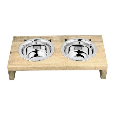 - Ξύλινη βάση με δύο ανοξείδωτα μπολ, υψηλής ποιότητας