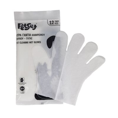 Υγρά γάντια καθαρισμού, για το σκύλο ή τη γάτα σας. Είναι εμποτισμένα με σαμπουάν ειδικής φόρμουλας που δεν χρειάζεται ξέβγαλμα, και περιέχει ενυδατικά στοιχεία καθαρίζοντας και προστατεύοντας το τρίχωμα. Το χέρι σας παραμένει στεγνό ενώ το χρησιμοποιείτε, καθώς η υγρασία δεν εισχωρεί σε αυτό. Είναι ένας εύκολος και ευχάριστος τρόπος για να περιποιηθείτε το κατοικίδιό σας, ενώ του προσφέρετε τα χάδια σας.